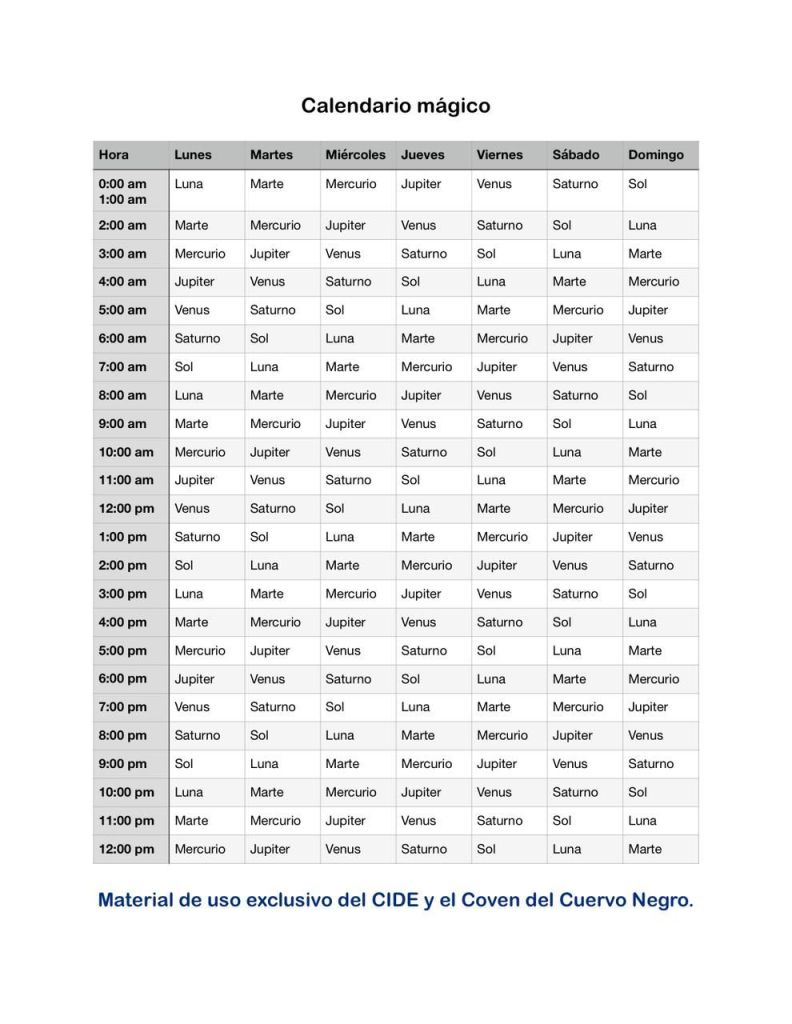 Desde tiempos antiguos en grimorios de grandes magos y hechiceros, se difundieron los calendarios mágico, que cuando son comprendidos, se pueden potenciar los hechizos, por influencia planetaria del día y hora específico, por ejemplo, realizar el hechizo el día de júpiter a la hora de la luna, se entiende día jueves a tal hora que coincide con la influencia lunar, en este vídeo se dice claramente como se elabora, y si lo utilizas bien verás grandes logros en tu magia, estarías aprovechando el sentido de la oportunidad.